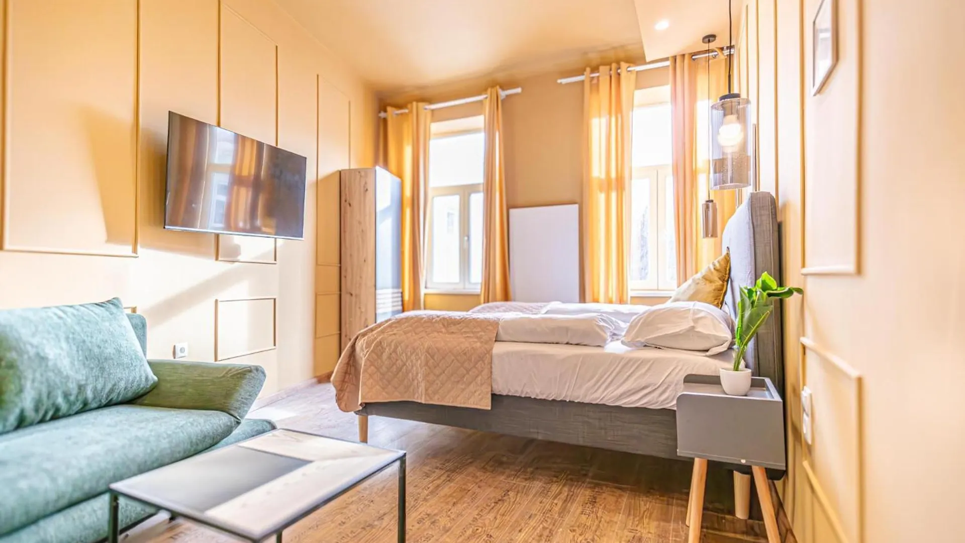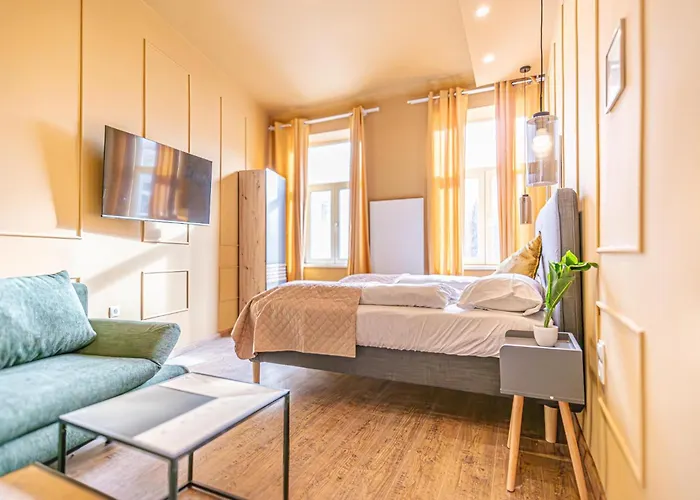 La résidence est situé dans le quartier "15. Rudolfsheim-Fünfhaus", à environ 3,1 km de l'église votive. Le château de Schonbrunn est à une courte distance de l'appartement.